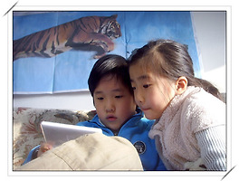 "와~! 동화책 많이 있네. 같이 볼까?"