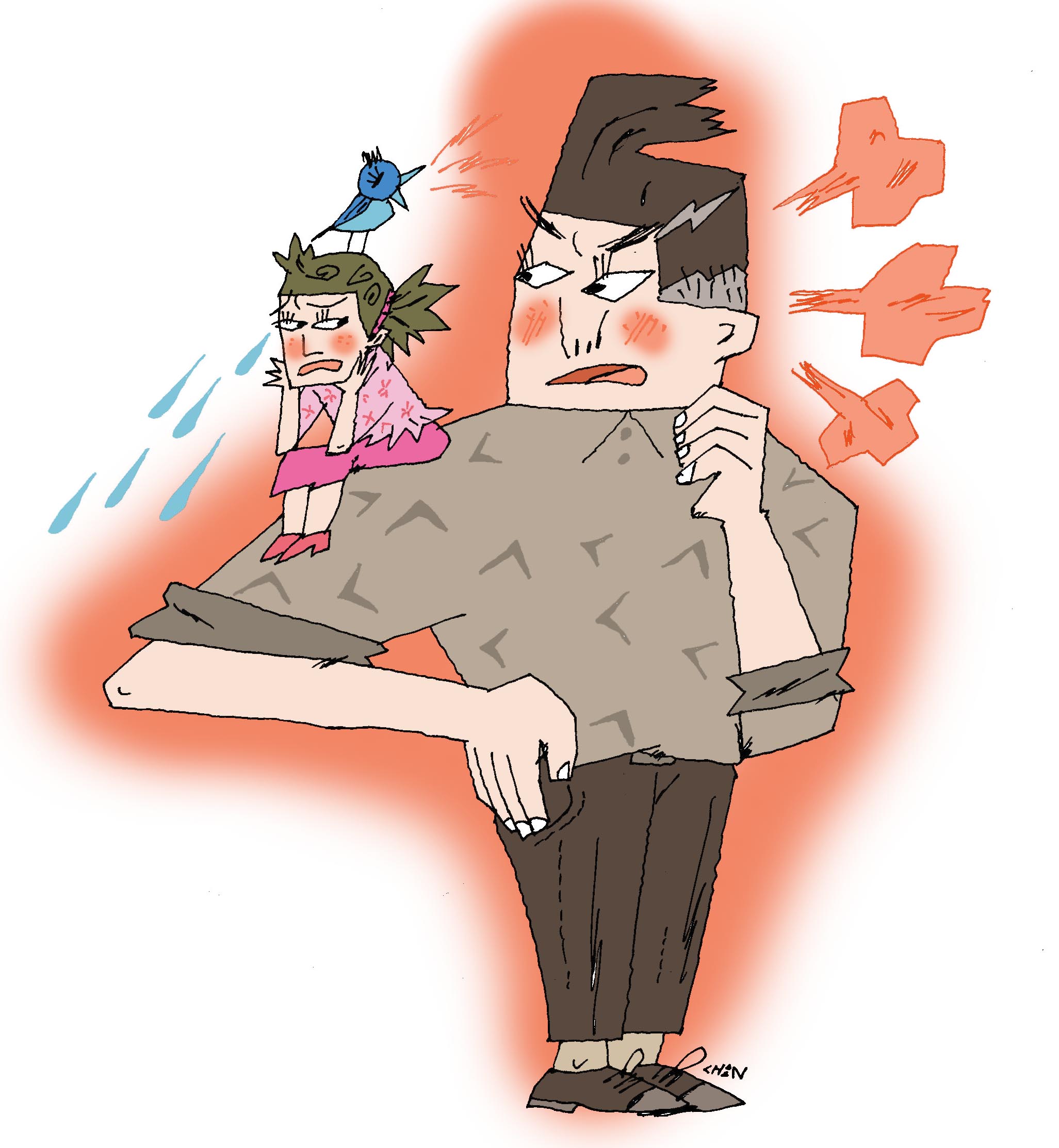 뒤돌아 앉아 훌쩍거리며 울고 있는 아내에게